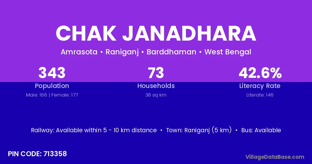 Raniganj (5 km) is the nearest town to Chak Janadhara village for major economic activities and is located approximately 5 km away.
