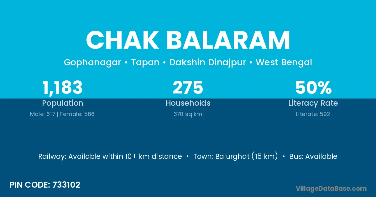 Dubrajpur (10 km) is the nearest town to Chak Balaram village for major economic activities and is located approximately 10 km away.