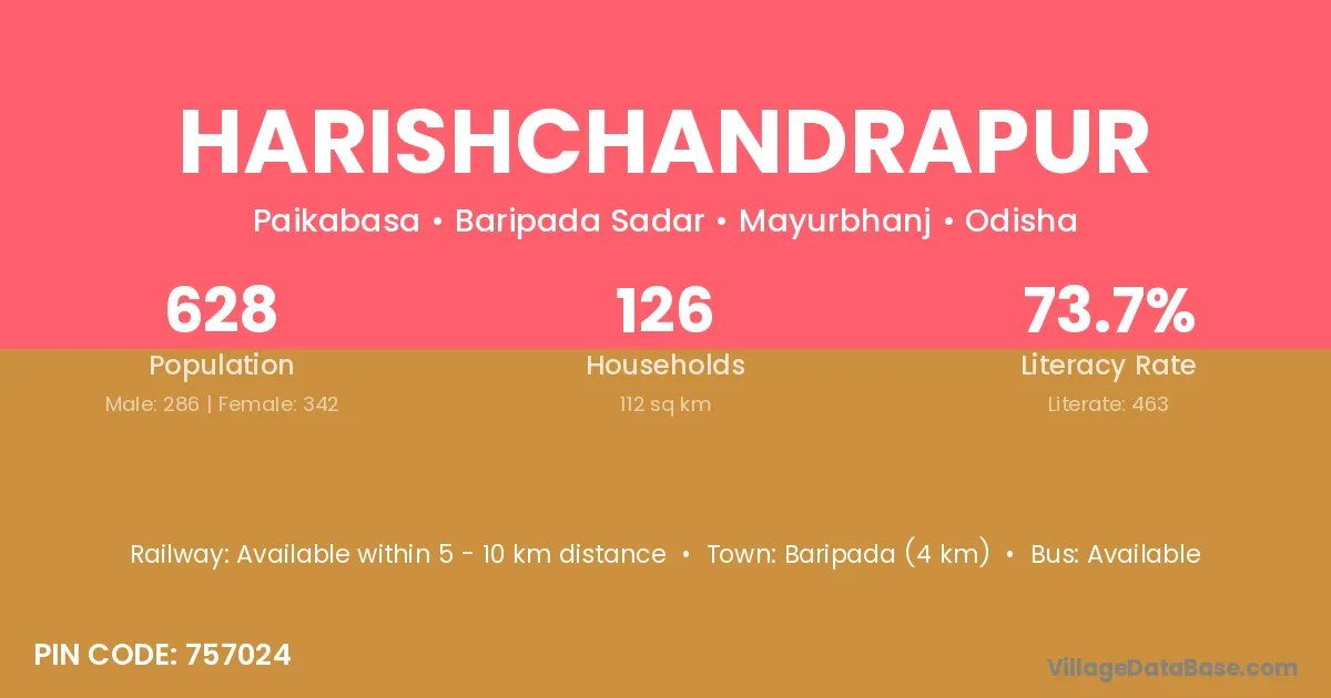 Harishchandrapur village has a total population of 171 people, of which 91 are males and 80 are females.
