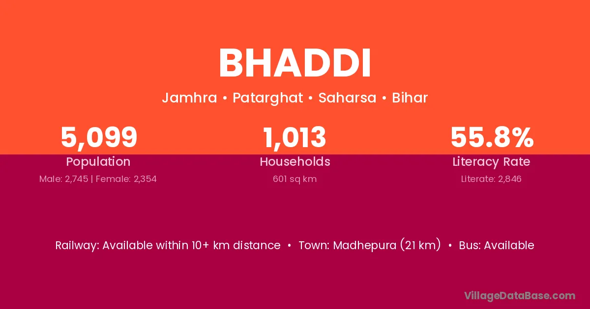 Dubrajpur (10 km) is the nearest town to Bhaddi village for major economic activities and is located approximately 10 km away.