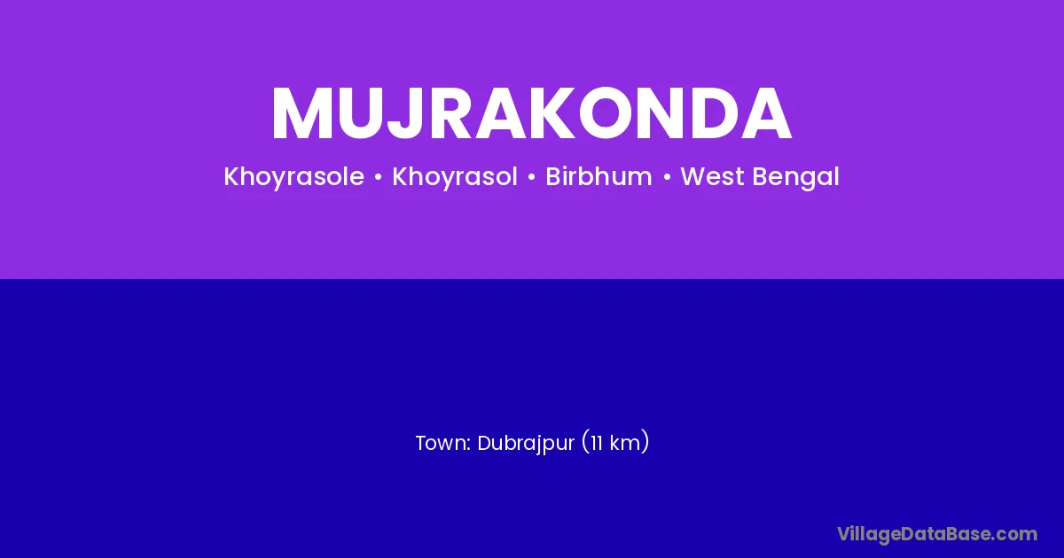 Dubrajpur (11 km) is the nearest town to Mujrakonda village for major economic activities and is located approximately 11 km away.