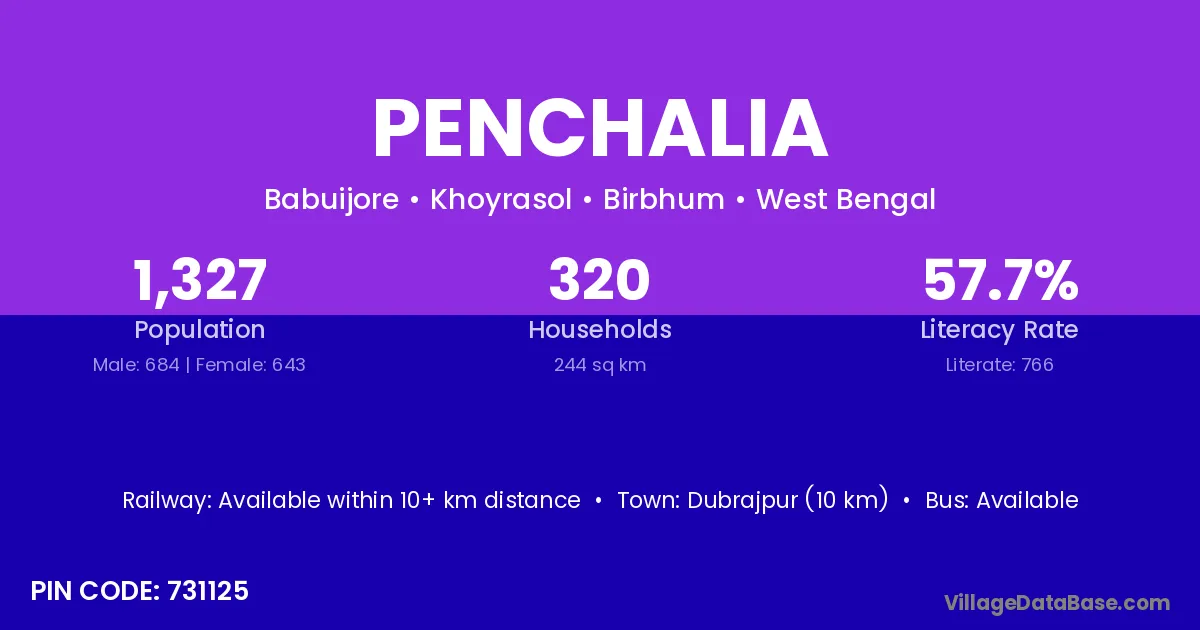 Dubrajpur (10 km) is the nearest town to Penchalia village for major economic activities and is located approximately 10 km away.