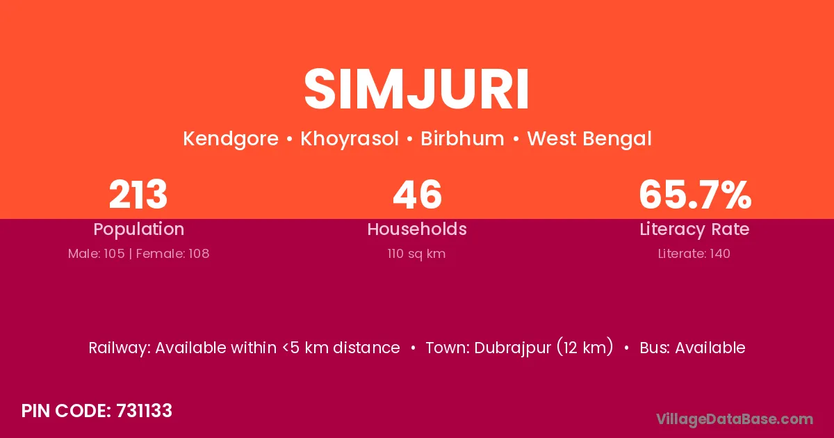 Dubrajpur (12 km) is the nearest town to Simjuri village for major economic activities and is located approximately 12 km away.