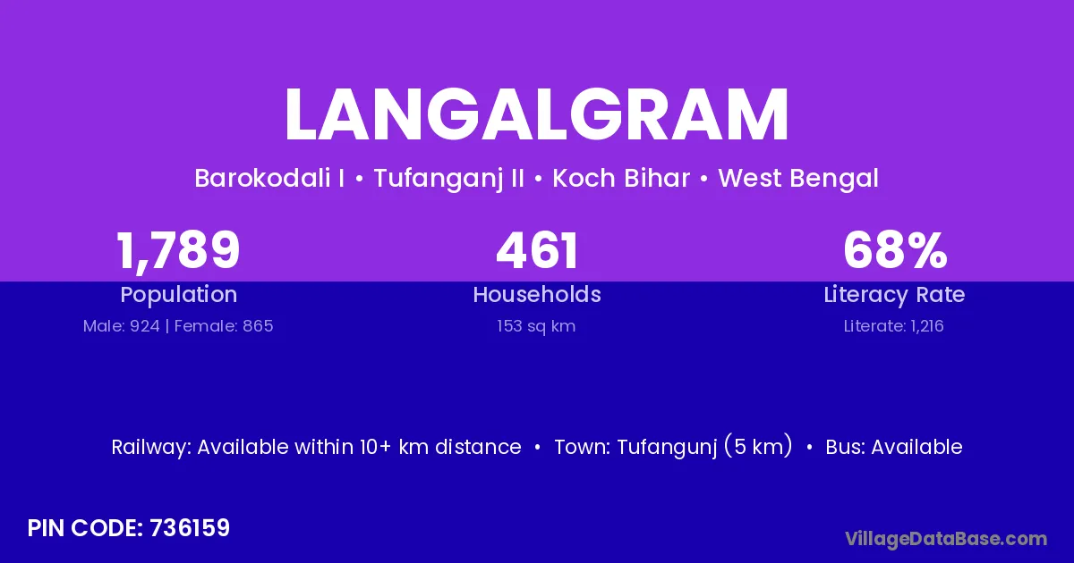 Bolpur (40 km) is the nearest town to Langalgram village for major economic activities and is located approximately 40 km away.