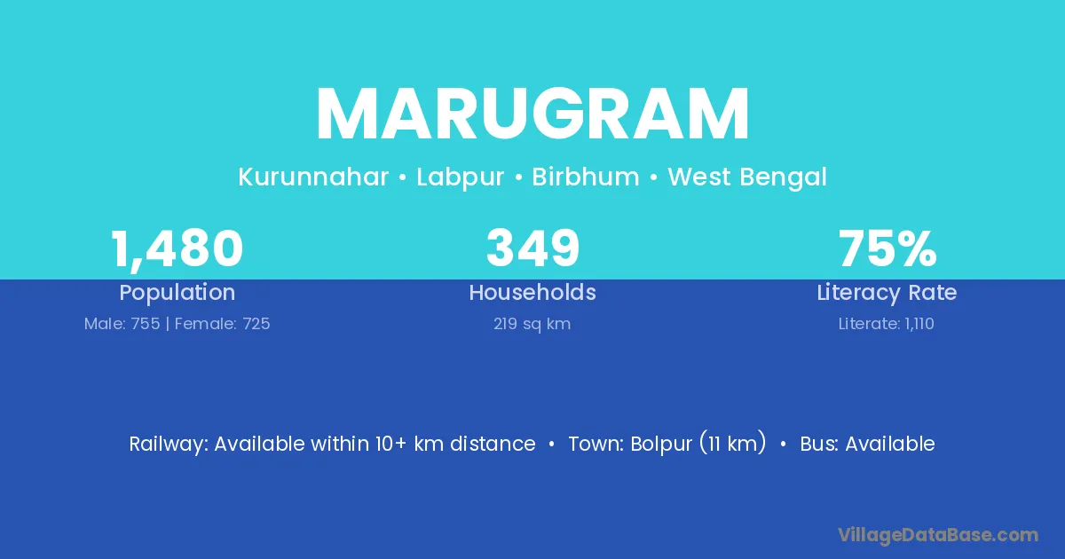 Bolpur (11 km) is the nearest town to Marugram village for major economic activities and is located approximately 11 km away.