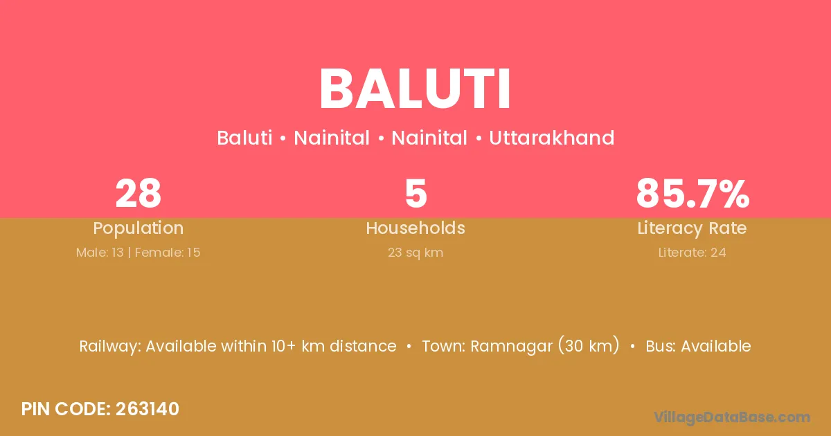 Suri (21 km) is the nearest town to Baluti village for major economic activities and is located approximately 21 km away.