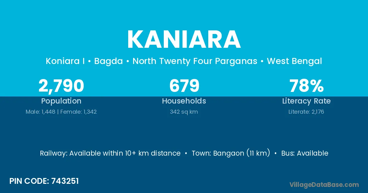 Suri (8 km) is the nearest town to Kaniara village for major economic activities and is located approximately 8 km away.