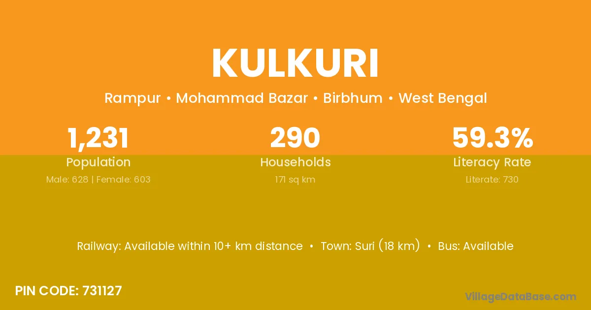 Suri (18 km) is the nearest town to Kulkuri village for major economic activities and is located approximately 18 km away.