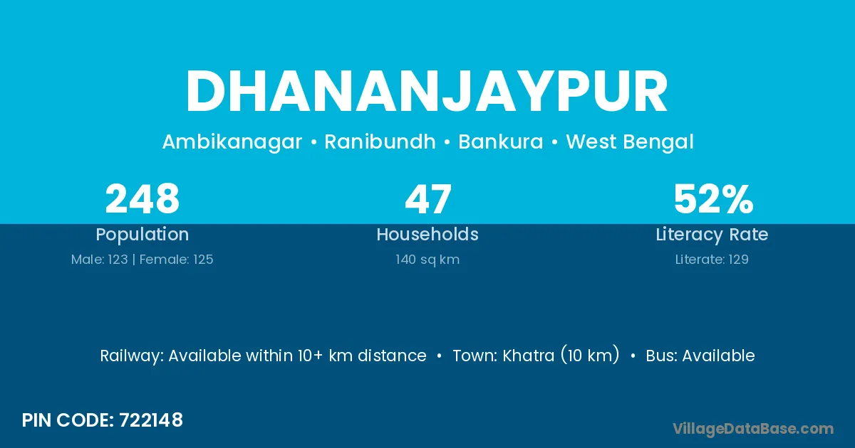 Rampurhat (40 km) is the nearest town to Dhananjaypur village for major economic activities and is located approximately 40 km away.