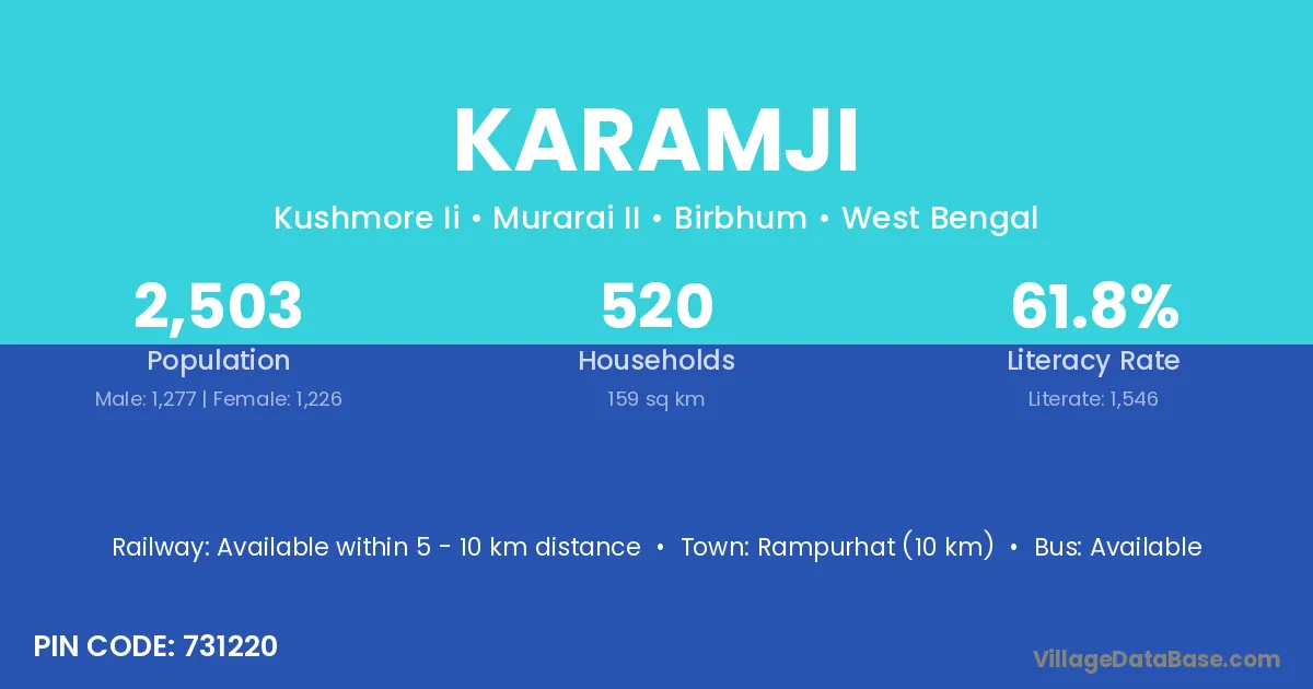 Rampurhat (10 km) is the nearest town to Karamji village for major economic activities and is located approximately 10 km away.