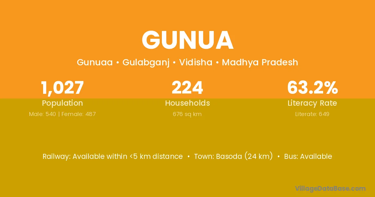 According to Census 2011 information, the village code of Gunua village is 731243.