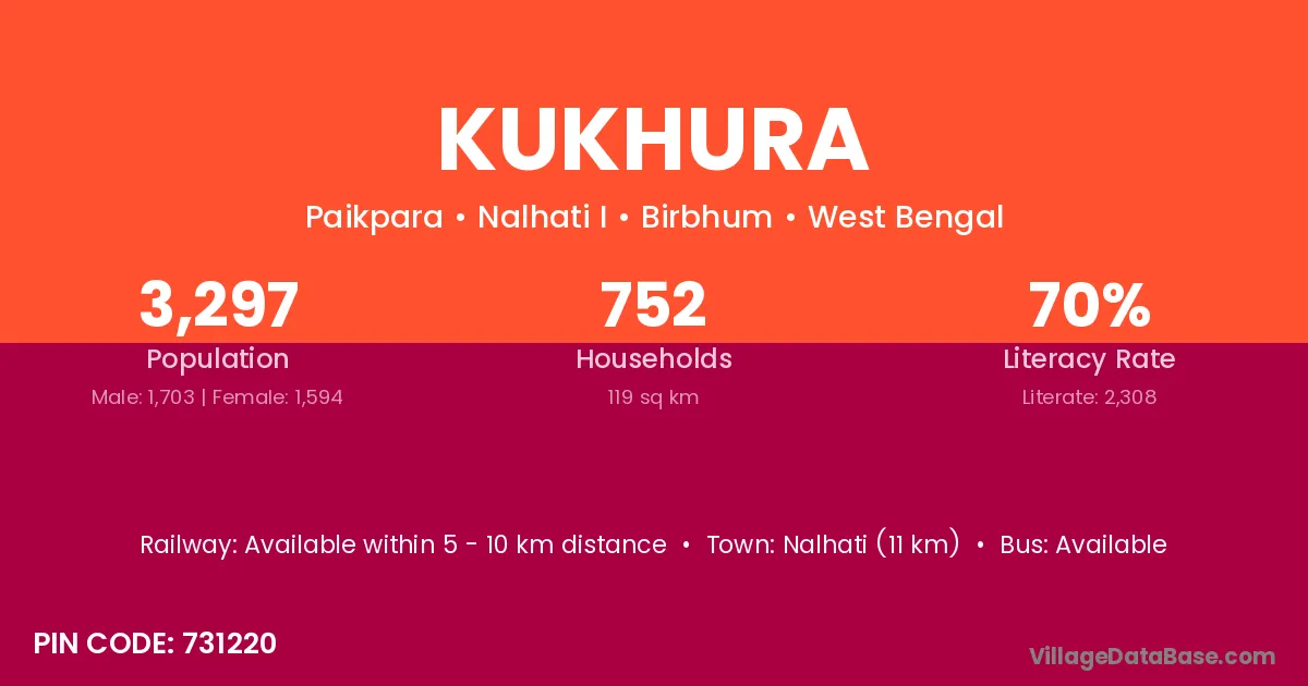 Nalhati (11 km) is the nearest town to Kukhura village for major economic activities and is located approximately 11 km away.