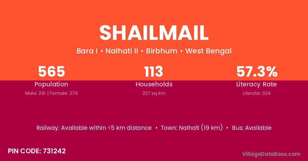 Nalhati (19 km) is the nearest town to Shailmail village for major economic activities and is located approximately 19 km away.