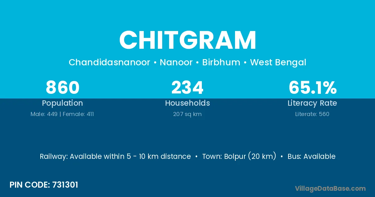 Bolpur (20 km) is the nearest town to Chitgram village for major economic activities and is located approximately 20 km away.