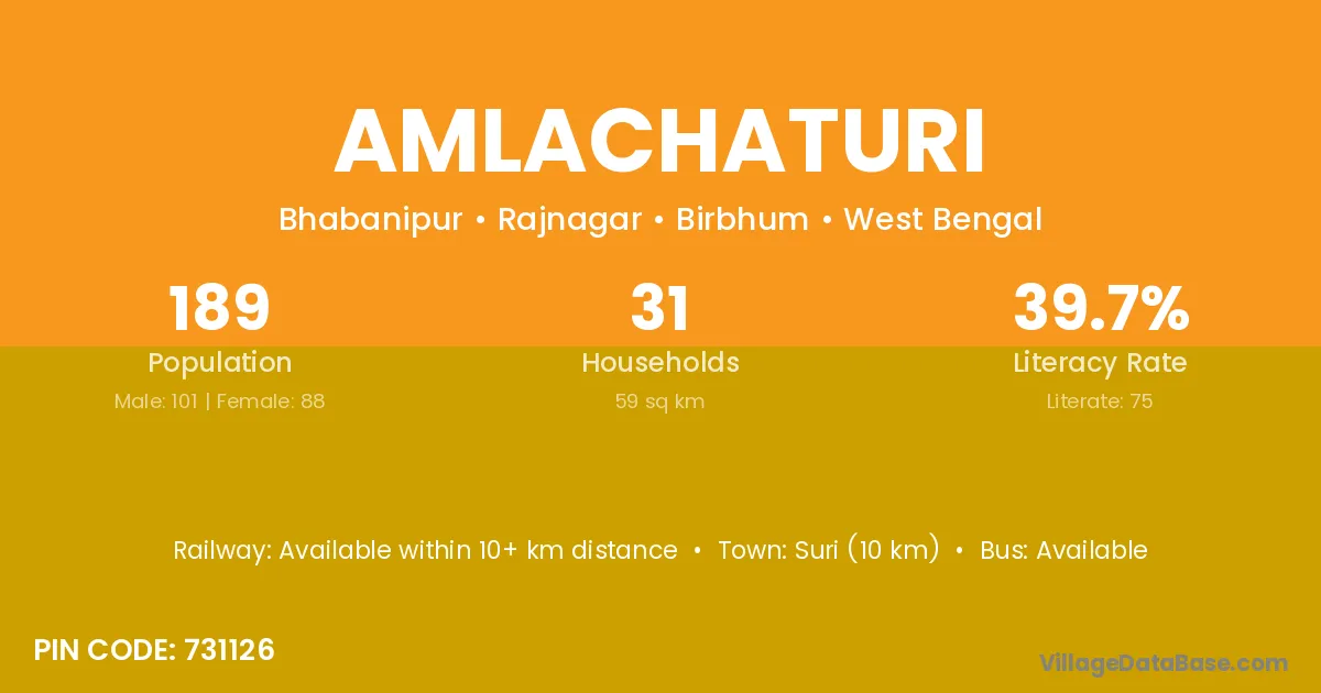 Suri (10 km) is the nearest town to Amlachaturi village for major economic activities and is located approximately 10 km away.