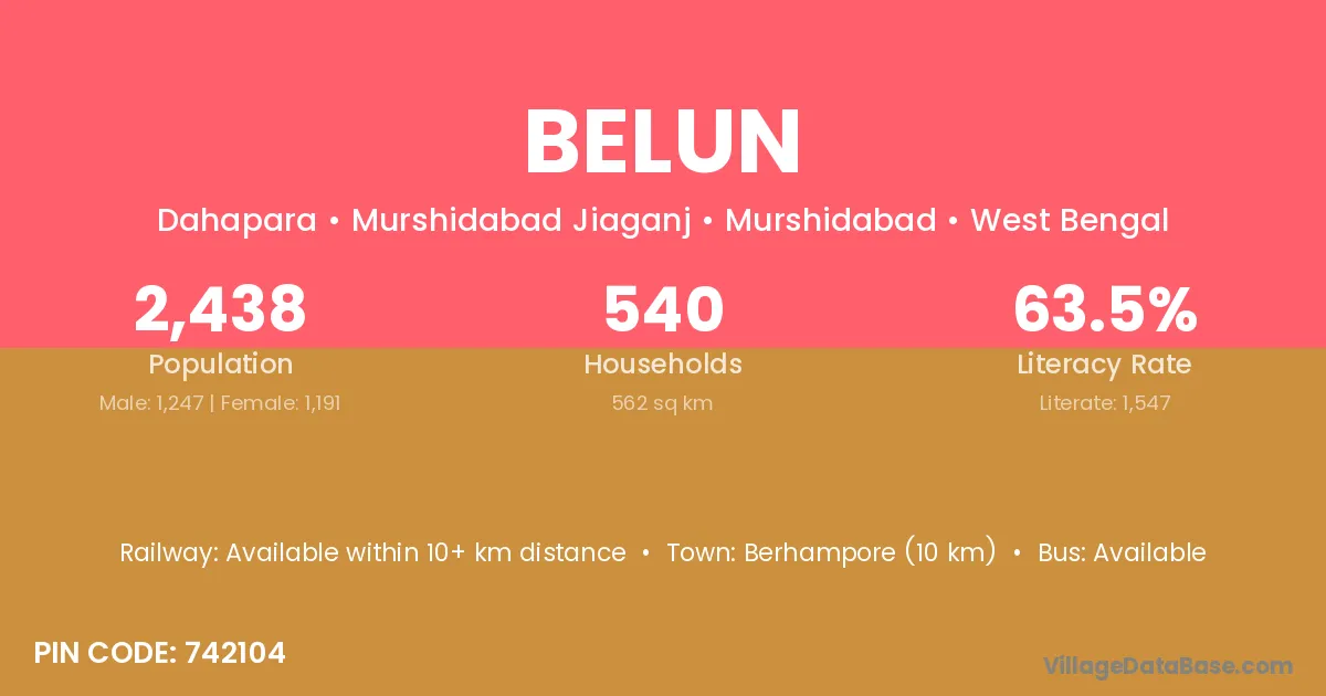 Rampurhat (13 km) is the nearest town to Belun village for major economic activities and is located approximately 13 km away.