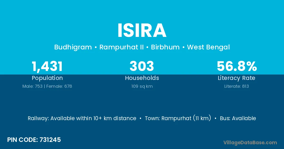 Rampurhat (11 km) is the nearest town to Isira village for major economic activities and is located approximately 11 km away.