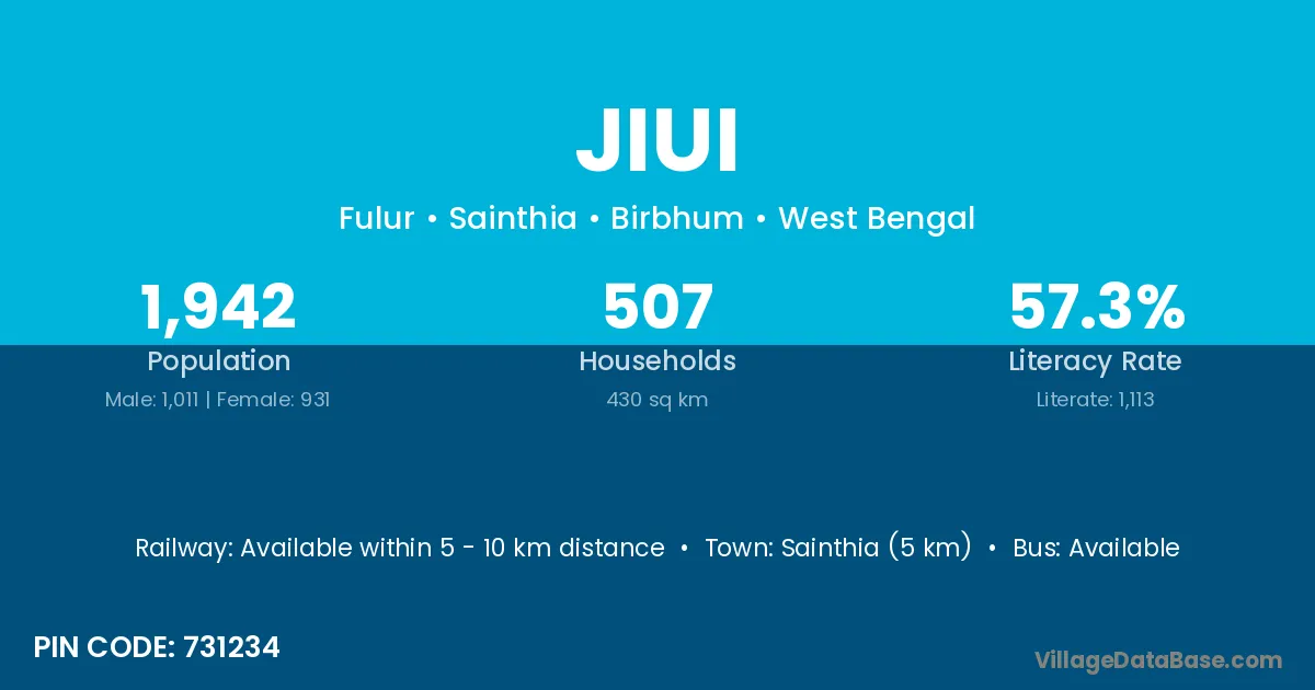 Sainthia (5 km) is the nearest town to Jiui village for major economic activities and is located approximately 5 km away.