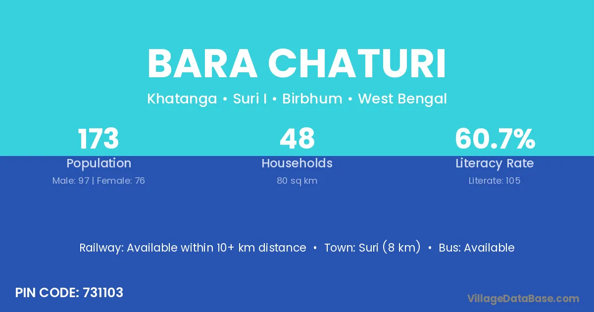 Suri (8 km) is the nearest town to Bara Chaturi village for major economic activities and is located approximately 8 km away.