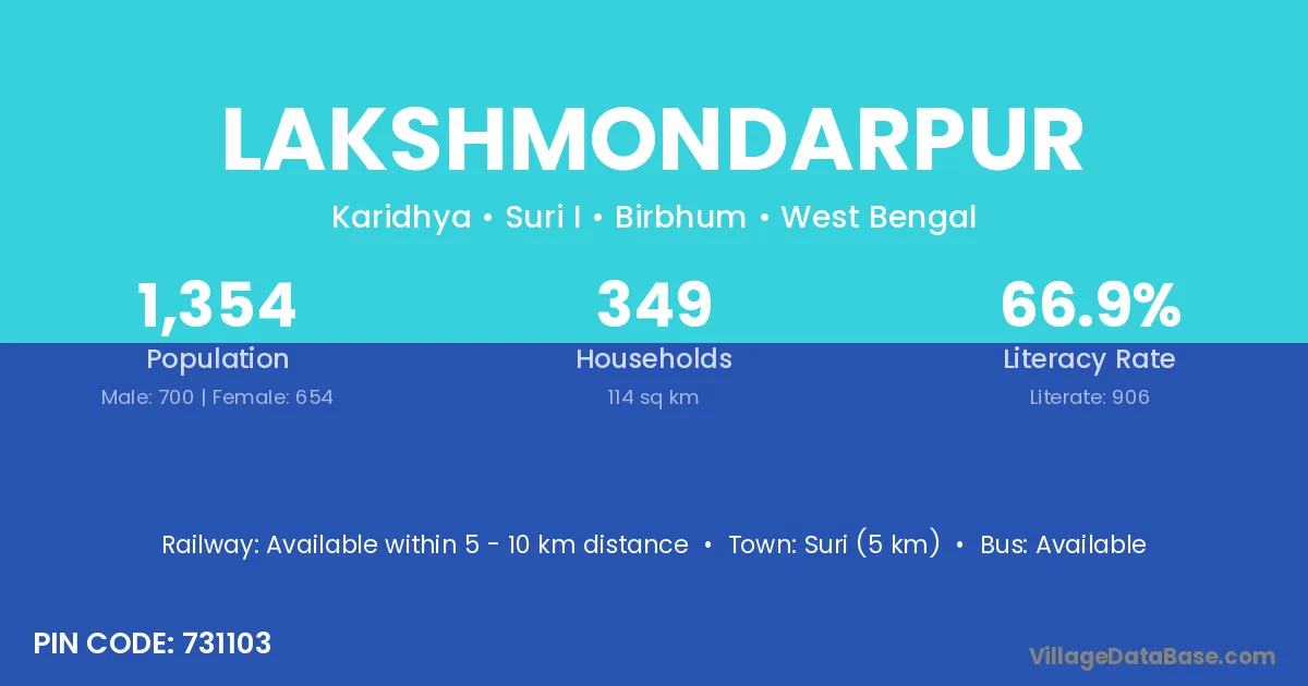 Suri (5 km) is the nearest town to Lakshmondarpur village for major economic activities and is located approximately 5 km away.