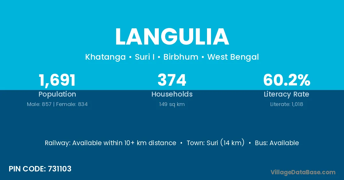 Suri (14 km) is the nearest town to Langulia village for major economic activities and is located approximately 14 km away.