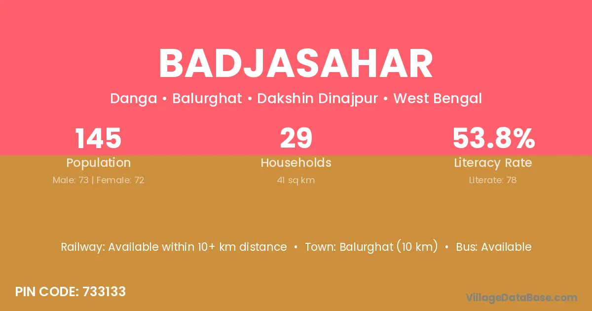 Balurghat (10 km) is the nearest town to Badjasahar village for major economic activities and is located approximately 10 km away.