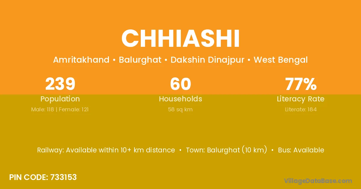 Balurghat (10 km) is the nearest town to Chhiashi village for major economic activities and is located approximately 10 km away.