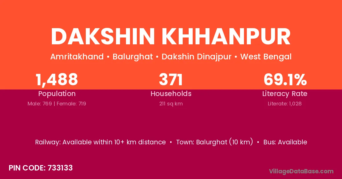 Balurghat (10 km) is the nearest town to Dakshin Khhanpur village for major economic activities and is located approximately 10 km away.