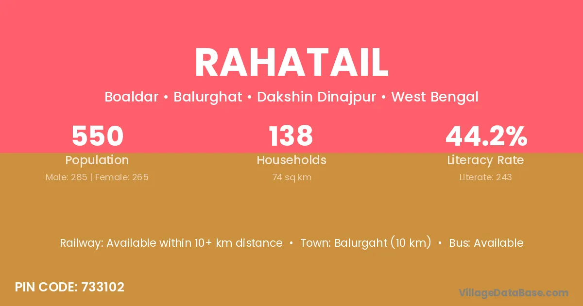 Balurgaht (10 km) is the nearest town to Rahatail village for major economic activities and is located approximately 10 km away.