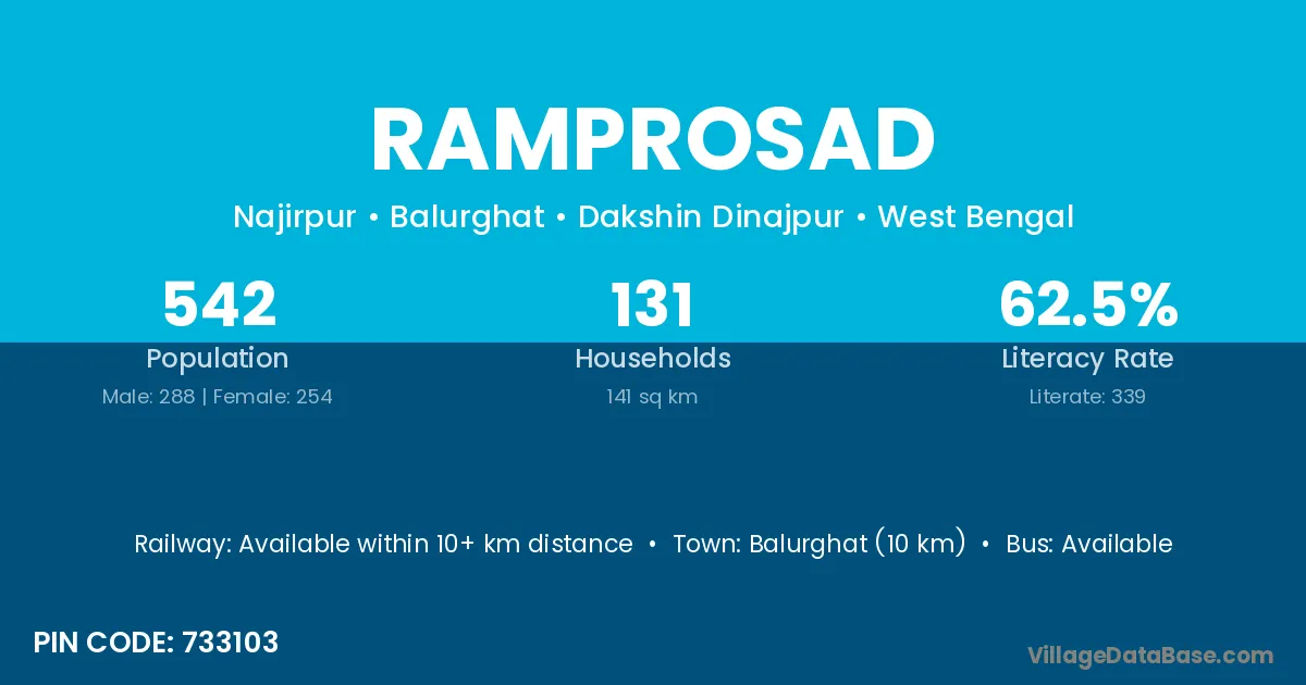 Balurghat (10 km) is the nearest town to Ramprosad village for major economic activities and is located approximately 10 km away.