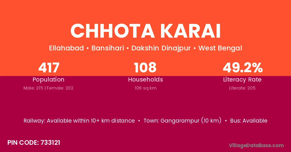 Gangarampur (10 km) is the nearest town to Chhota Karai village for major economic activities and is located approximately 10 km away.