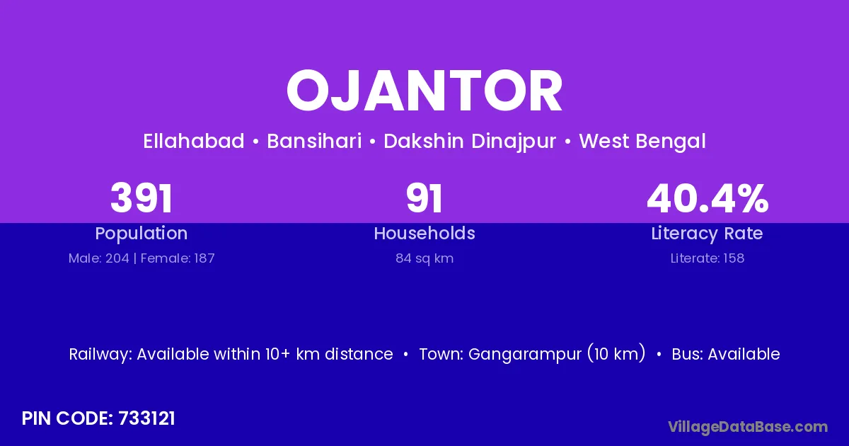 Gangarampur (10 km) is the nearest town to Ojantor village for major economic activities and is located approximately 10 km away.