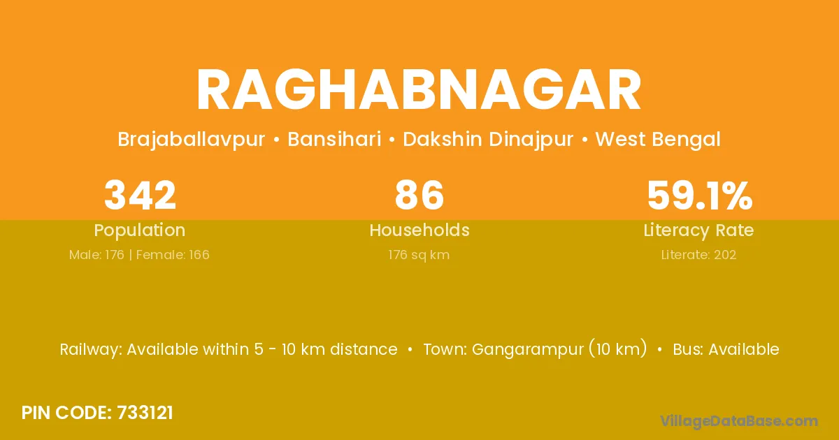 According to Census 2011 information, the village code of Raghabnagar village is 733121.