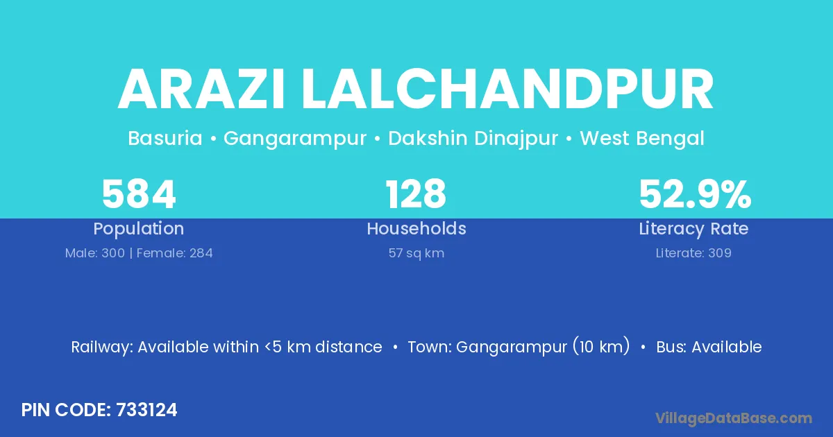 According to Census 2011 information, the village code of Arazi Lalchandpur village is 733124.