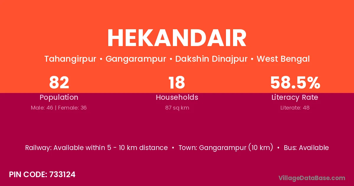Gangarampur (10 km) is the nearest town to Hekandair village for major economic activities and is located approximately 10 km away.