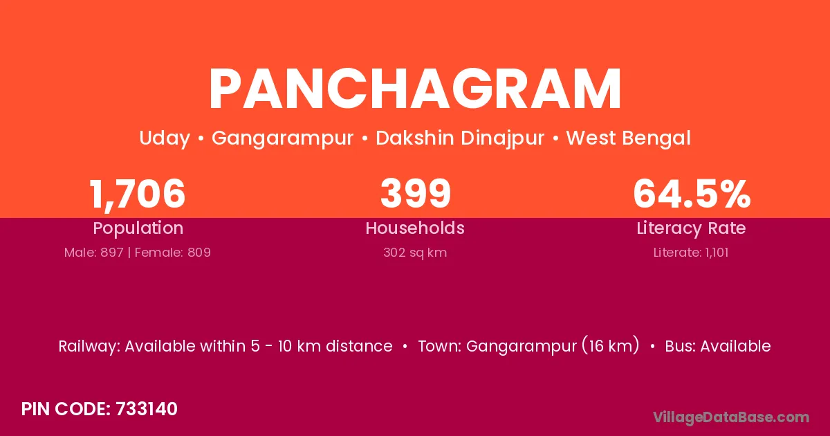Gangarampur (16 km) is the nearest town to Panchagram village for major economic activities and is located approximately 16 km away.