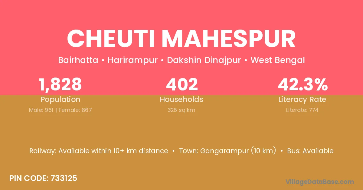 There are approximately 402 households in Cheuti Mahespur village.