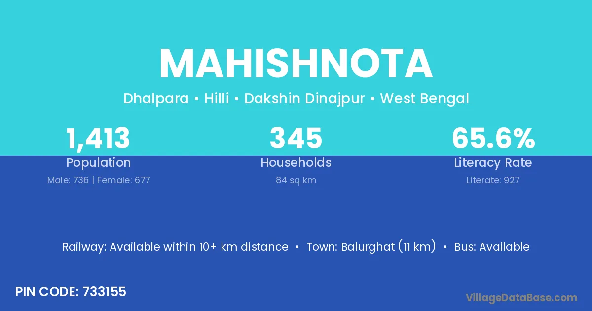 Balurghat (11 km) is the nearest town to Mahishnota village for major economic activities and is located approximately 11 km away.