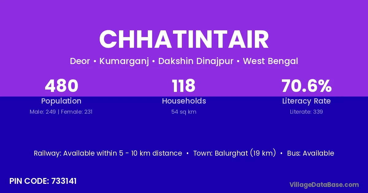 Balurghat (19 km) is the nearest town to Chhatintair village for major economic activities and is located approximately 19 km away.