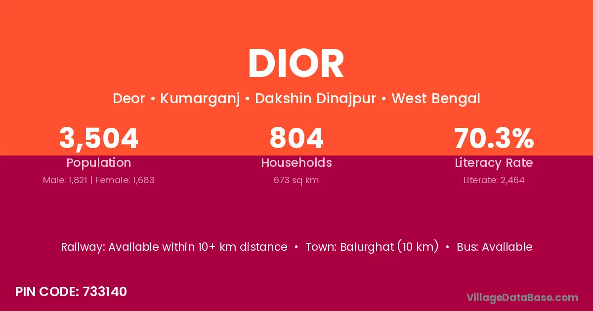 Balurghat (10 km) is the nearest town to Dior village for major economic activities and is located approximately 10 km away.