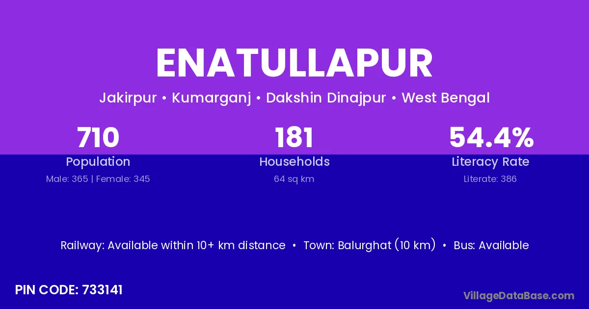 Balurghat (10 km) is the nearest town to Enatullapur village for major economic activities and is located approximately 10 km away.