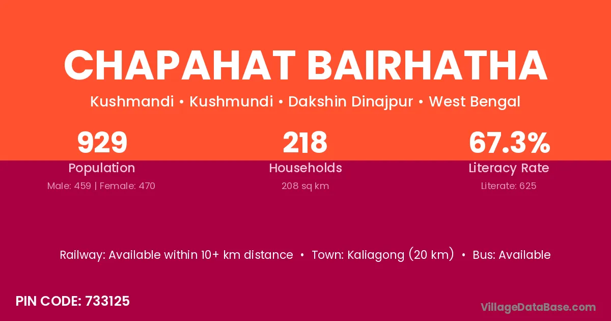 Chapahat Bairhatha village is located in the Kushmundi Subdivision of the Dakshin Dinajpur district in West Bengal .