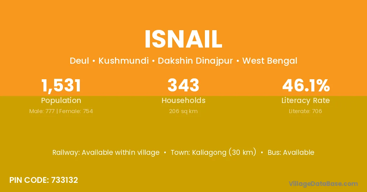 According to Census 2011 information, the village code of Isnail village is 733132.