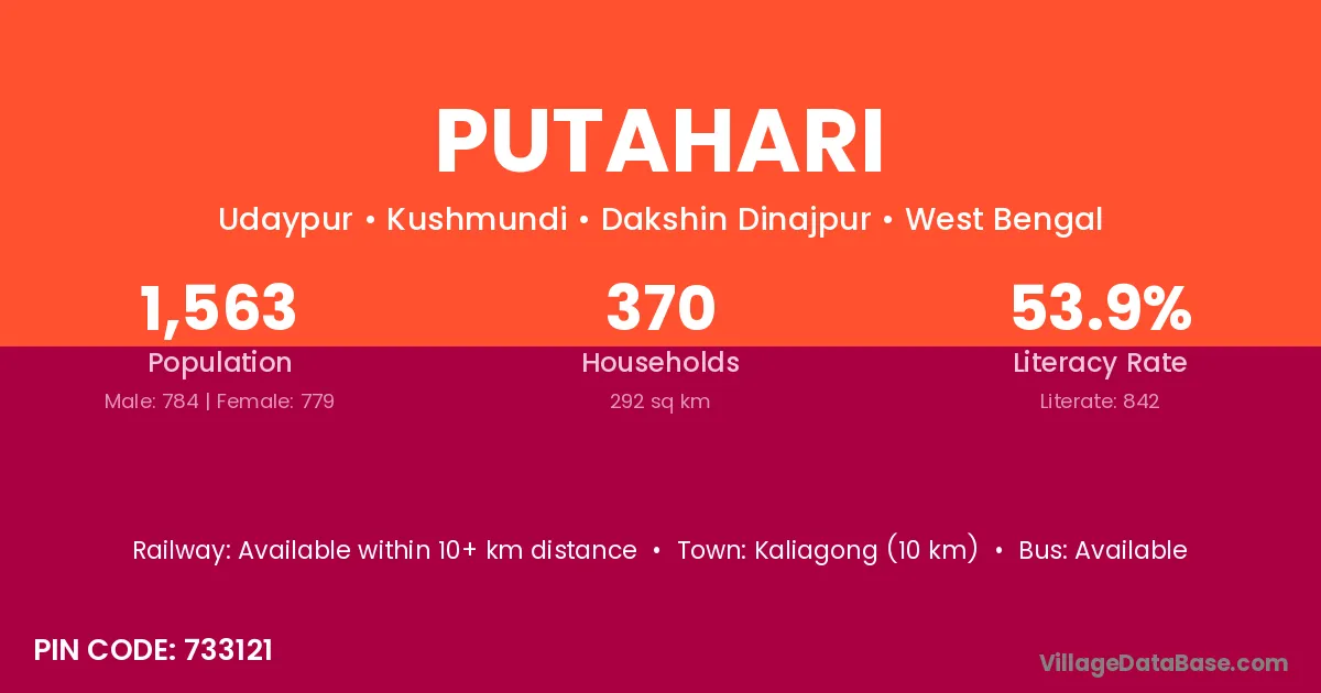 Kaliagong (10 km) is the nearest town to Putahari village for major economic activities and is located approximately 10 km away.