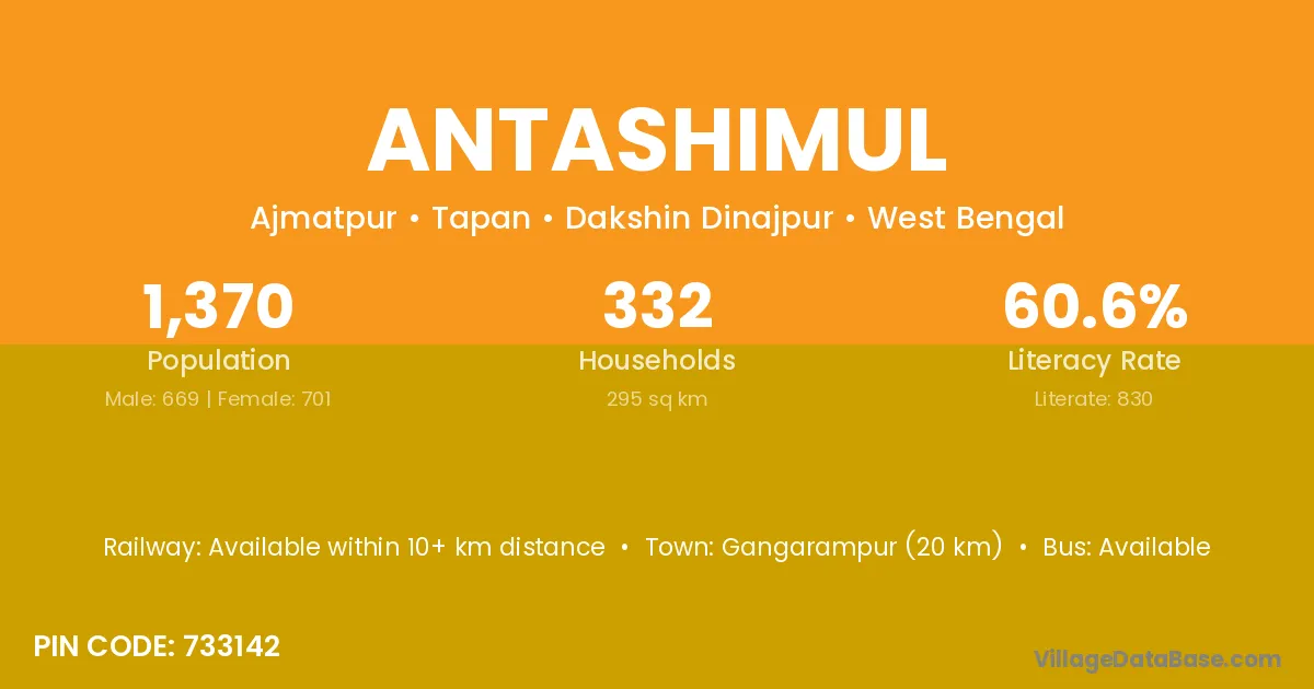 Gangarampur (20 km) is the nearest town to Antashimul village for major economic activities and is located approximately 20 km away.