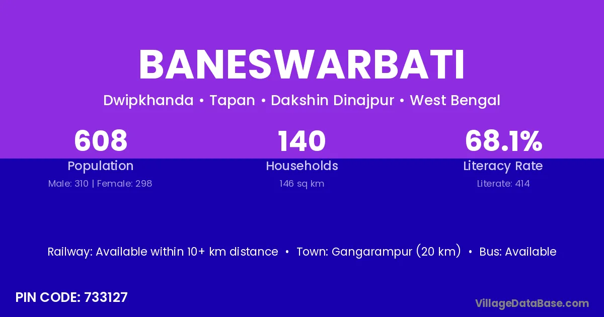 Gangarampur (20 km) is the nearest town to Baneswarbati village for major economic activities and is located approximately 20 km away.