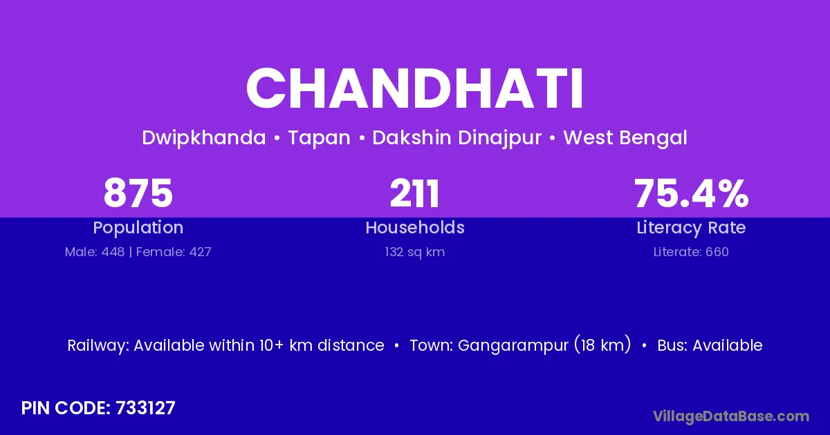 Gangarampur (18 km) is the nearest town to Chandhati village for major economic activities and is located approximately 18 km away.