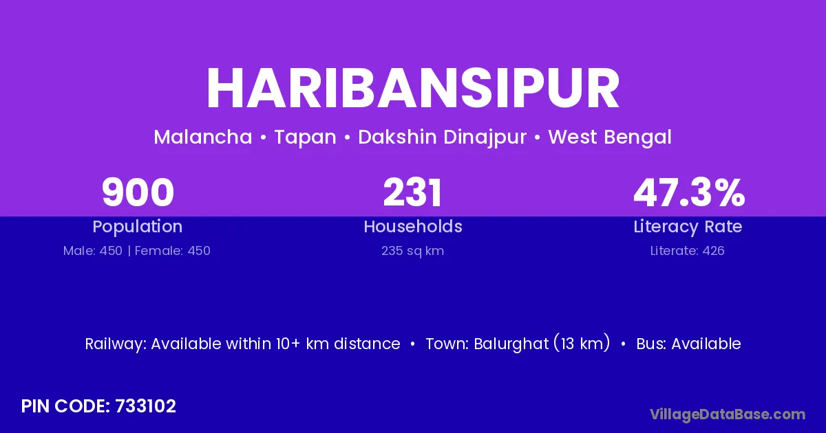 Balurghat (13 km) is the nearest town to Haribansipur village for major economic activities and is located approximately 13 km away.