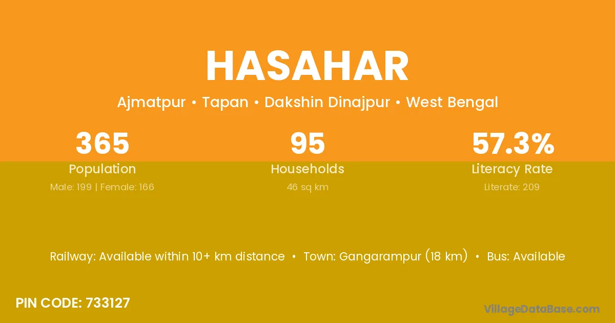 Gangarampur (18 km) is the nearest town to Hasahar village for major economic activities and is located approximately 18 km away.