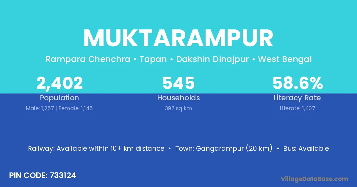 Gangarampur (20 km) is the nearest town to Muktarampur village for major economic activities and is located approximately 20 km away.